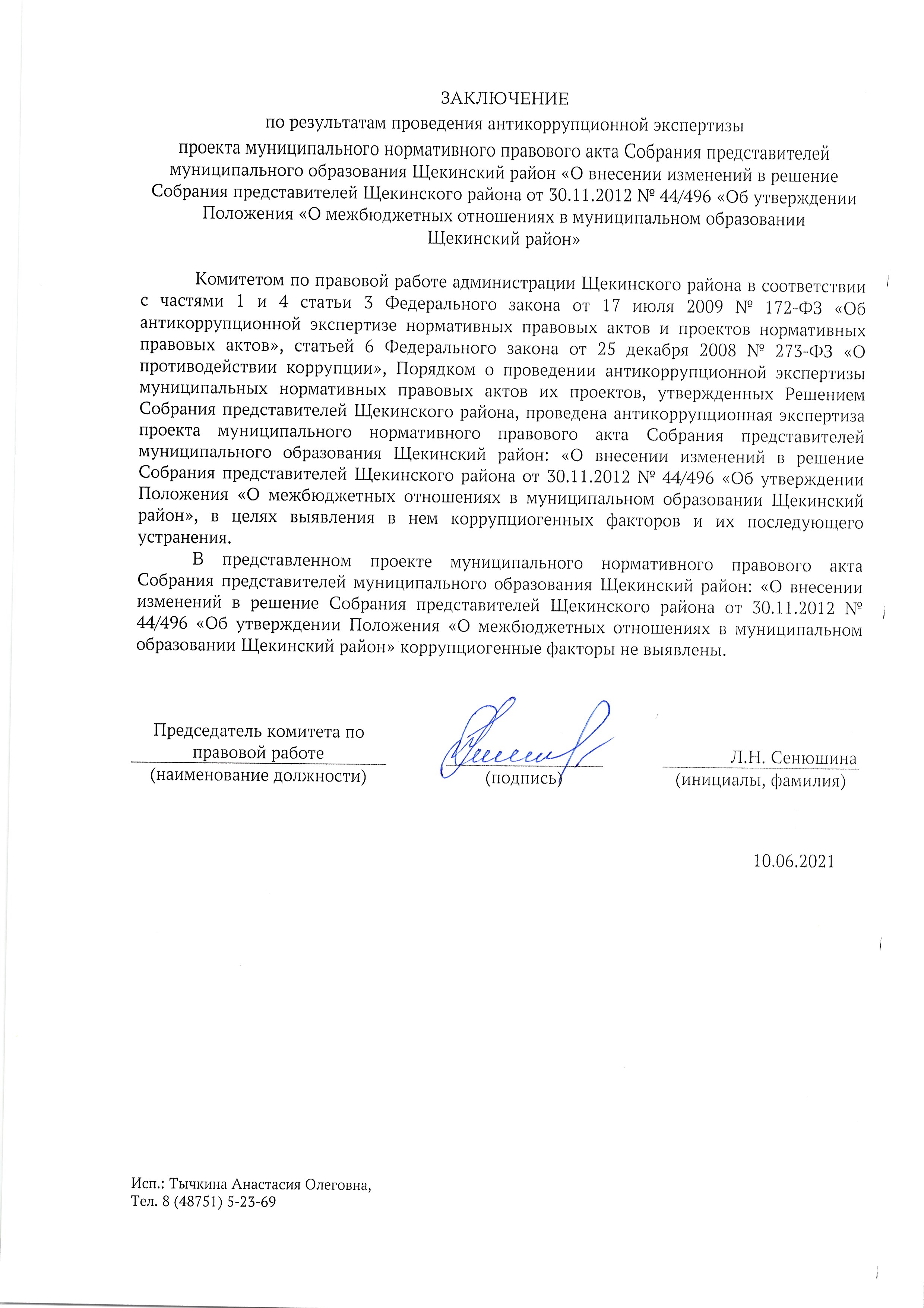 Щекинского района от 30.11.2012 № 44/496