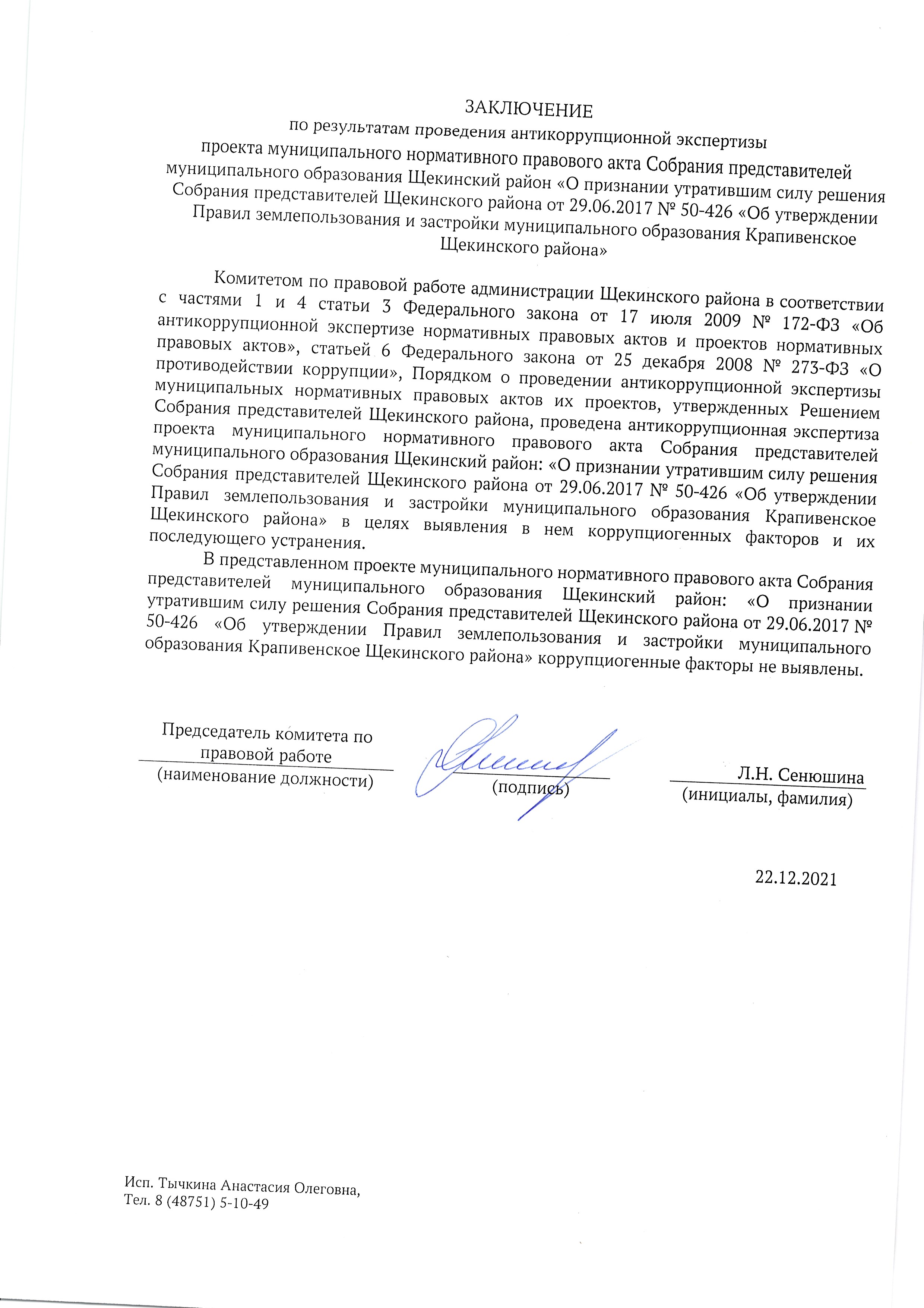 О признании утратившим силу решения Собрания представителей Щекинского района от 29.06.2017 № 50-426 «Об утверждении Правил землепользования и застройки муниципального образования Крапивенское Щекинского района»