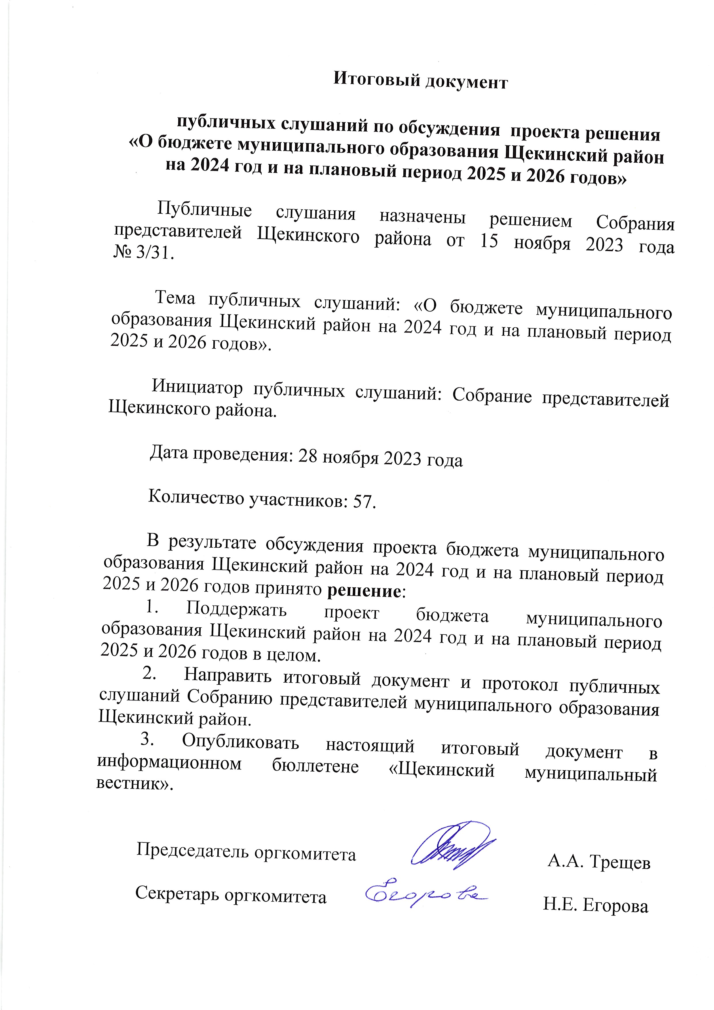 28 ноября 2023 года в 16:30 публичные слушания с вопросом: «О бюджете муниципального образования Щекинский район на 2024 год и на плановый период 2025 и 2026 годов».